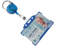 The Carabiner ID Badge Reel with Strap Clip is a retractable cord with reinforced vinyl strap clip to securely hold ID cards and badges. These reels available in blue, red, white, green or black has a carabiner hook that safely attaches to end users.