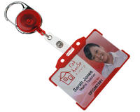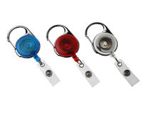 The Carabiner ID Badge Reel with Strap Clip is a retractable cord with reinforced vinyl strap clip to securely hold ID cards and badges. These reels available in blue, red, white, green or black has a carabiner hook that safely attaches to end users.