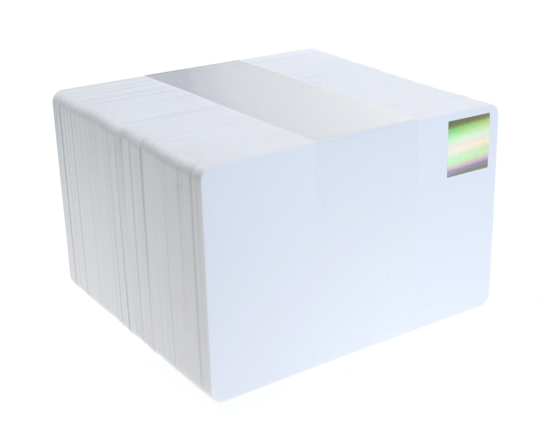 You Are Here: Home > Cards > Blank White Cards > Blank White Plastic Cards with Gold Holopatch (Pack of 100)