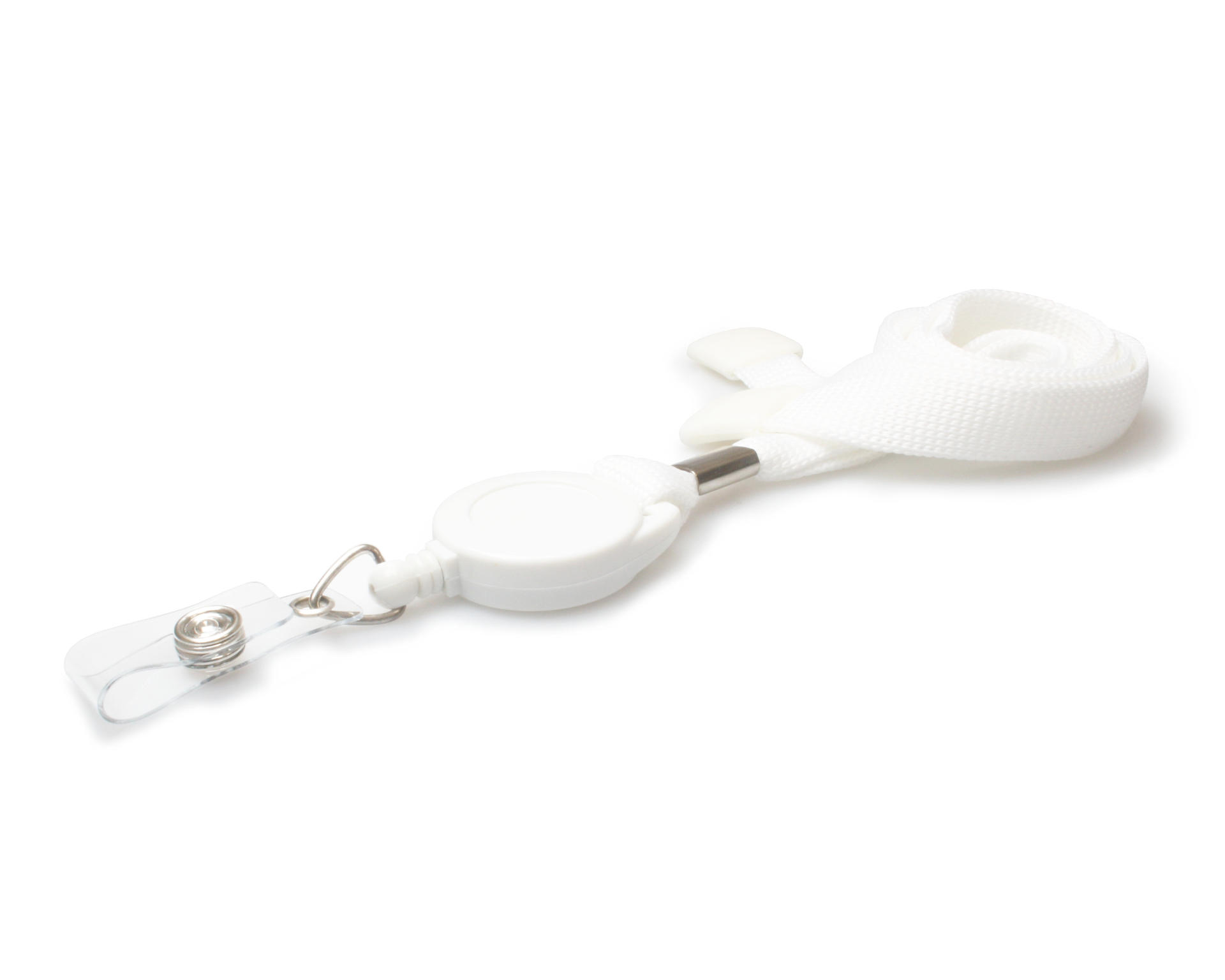 16mm White Tubular Flexiweave Breakaway Lanyards with attached Mini Yoyo Card Reel & Clear Vinyl Strap (Pack of 50) [L-B-WHSW15CR]
