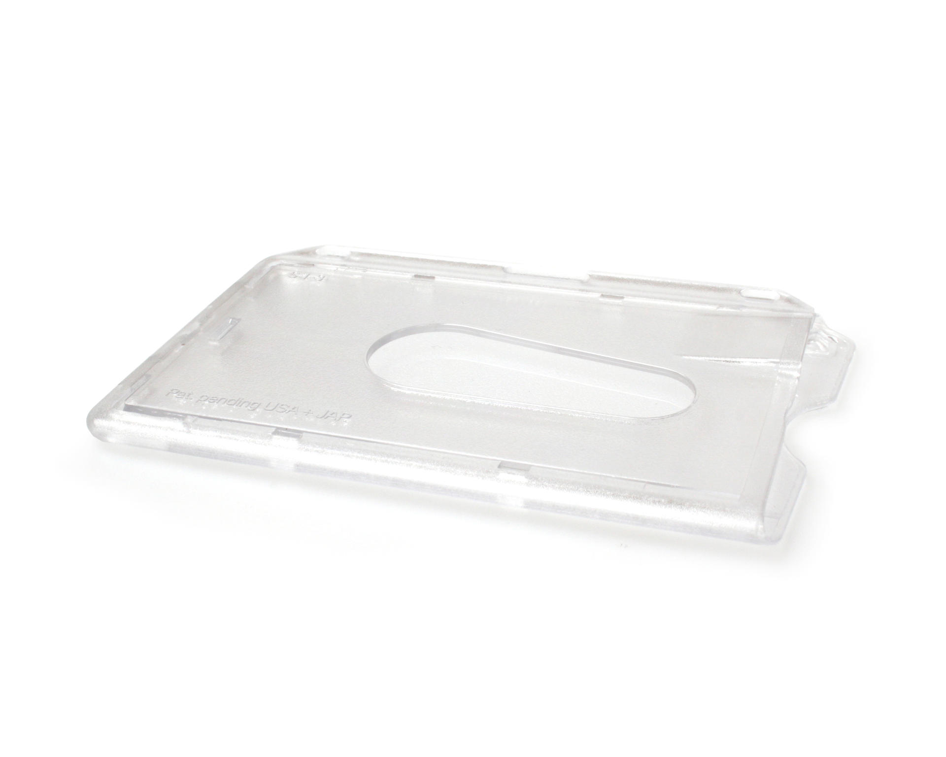 The Clear Enclosed Frosted Rigid Card Holder is a hard-shell type of holder with a clear frosted finish that fits standard CR80 card size inserts. It is great for protecting and displaying your customer’s plastic cards and badges.