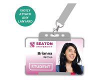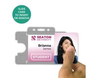 Our new range of BioBadge degradable single-sided ID card holders are available in landscape orientation and are manufactured using Oxo-biodegradable plastic. These card holders can play a significant role in helping your customers reduce their carbon footprint. The moulded ridge design reduces card bending or cracking resulting in fewer cards being reissued, therefore saving your customers both time and money.
