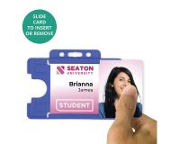 Our new range of BioBadge degradable single-sided ID card holders are available in landscape orientation and are manufactured using Oxo-biodegradable plastic. These card holders can play a significant role in helping your customers reduce their carbon footprint. The moulded ridge design reduces card bending or cracking resulting in fewer cards being reissued, therefore saving your customers both time and money.