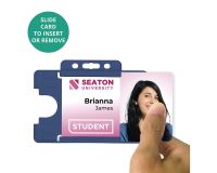 Our new range of BioBadge degradable single-sided ID card holders are available in landscape orientation and are manufactured using Oxo-biodegradable plastic. These card holders can play a significant role in helping your customers reduce their carbon footprint. The moulded ridge design reduces card bending or cracking resulting in fewer cards being reissued, therefore saving your customers both time and money.