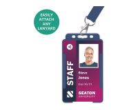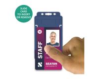 Our new range of BioBadge degradable single-sided ID card holders are available in portrait orientation and are manufactured using Oxo-biodegradable plastic. These card holders can play a significant role in helping your customers reduce their carbon footprint. The moulded ridge design reduces card bending or cracking resulting in fewer cards being reissued, therefore saving your customers both time and money.