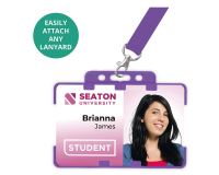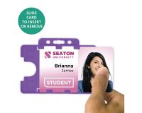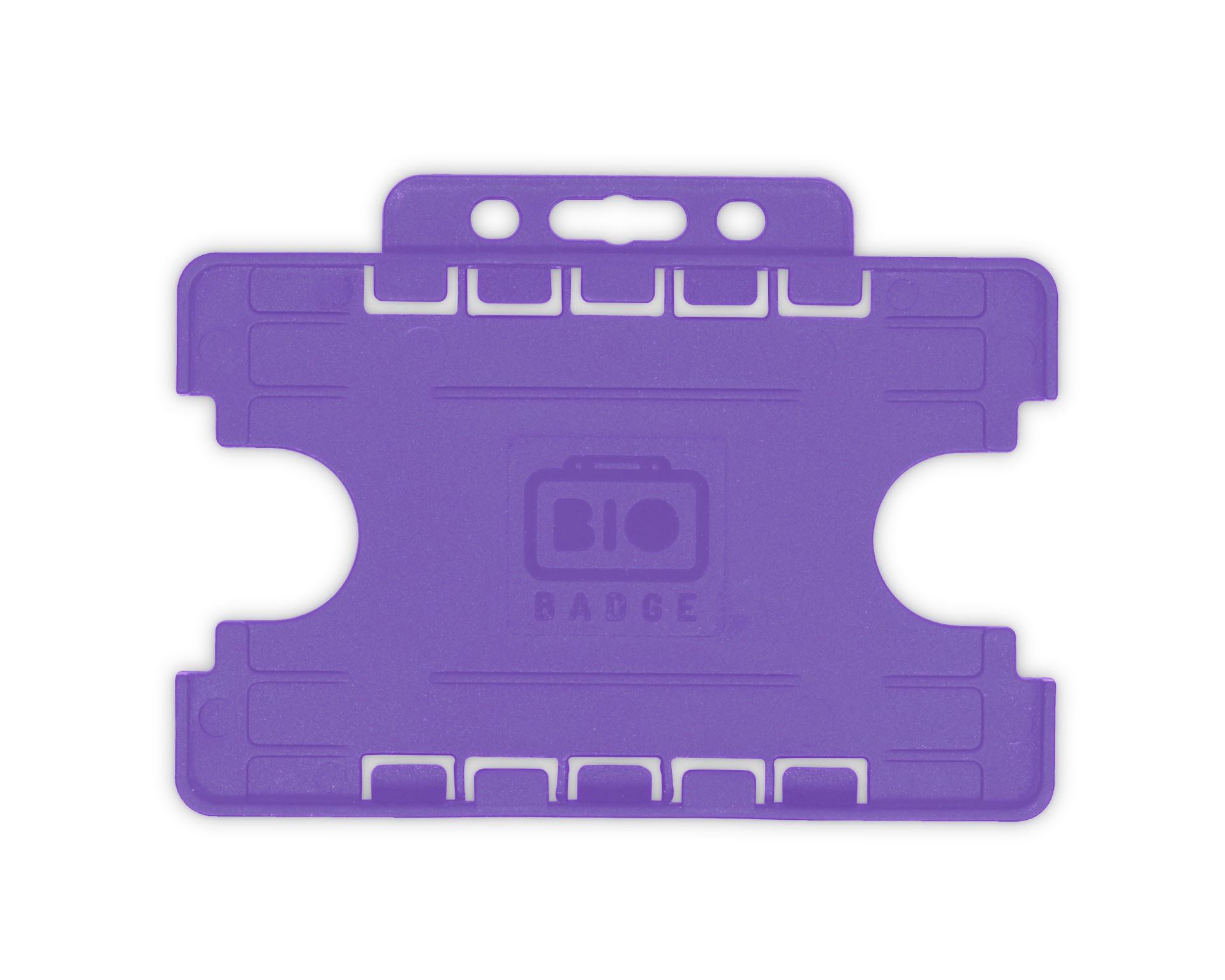 You Are Here: Home > Accessories > Plastic ID Card Badge Holders > Open-Faced Holders > Purple Dual-Sided BIOBADGE Open Faced ID Card Holders - Landscape (Pack of 100)