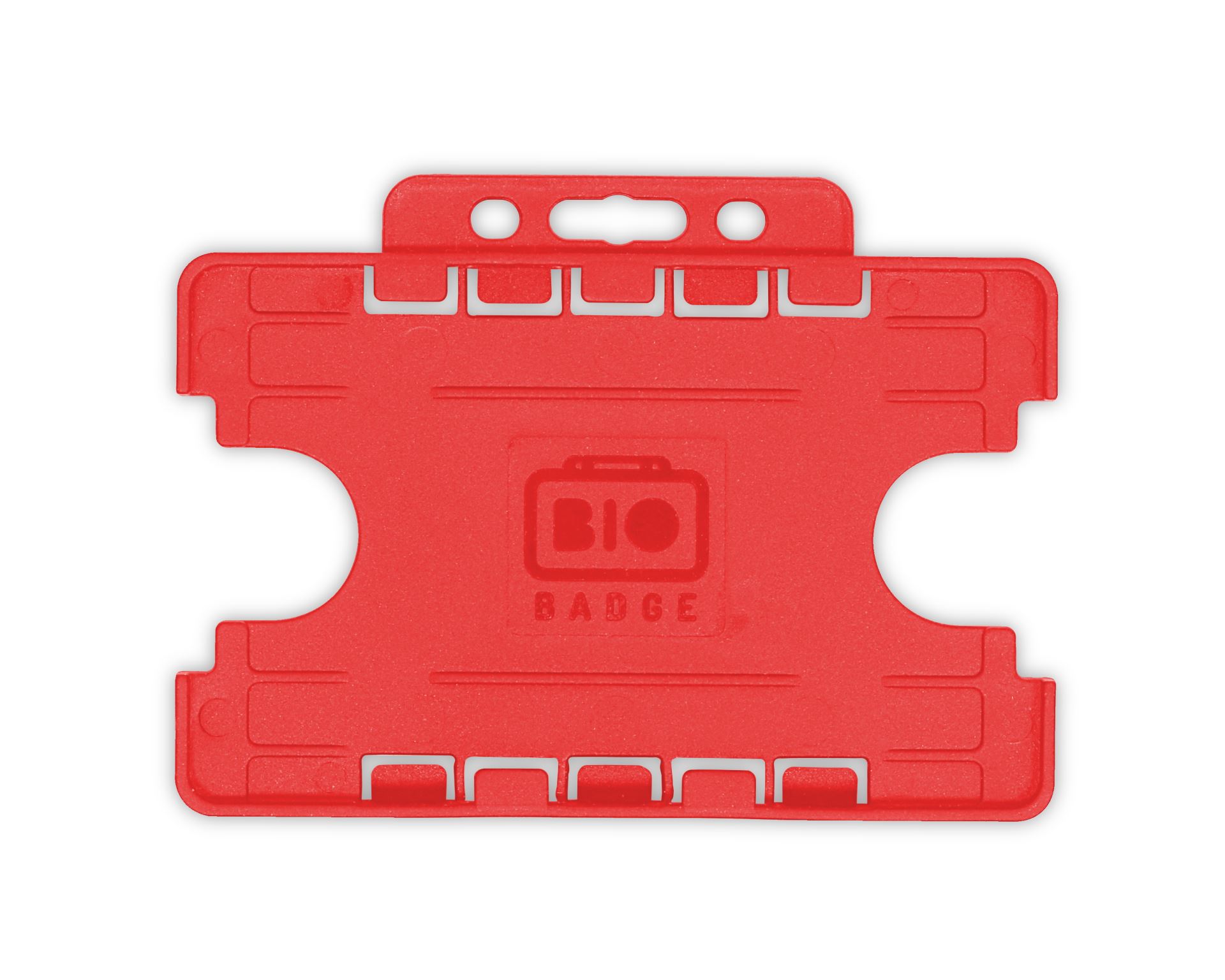 You Are Here: Home > Accessories > Plastic ID Card Badge Holders > Open-Faced Holders > Red Dual-Sided BIOBADGE Open Faced ID Card Holders - Landscape (Pack of 100)