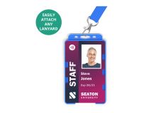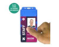 Our range of BioBadge dual-sided ID card holders are available in portrait orientation and are proven to protect cards from everyday wear and tear. The moulded ridge design reduces card bending or cracking resulting in fewer cards being reissued, therefore saving your customers both time and money. These card holders can play a significant role in helping your customers reduce their carbon footprint and are manufactured in the UK.