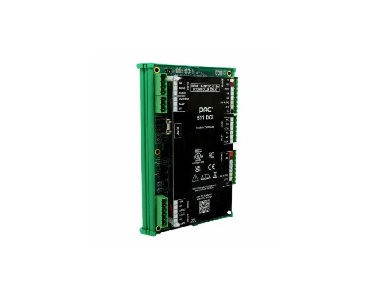 The Comelit-PAC 909032511 511 DCi Controller is an access control solution designed to secure and manage a single door. The DIN mount allows installation in optional PAC 4-way or 6-way DIN cabinets, providing flexibility for residential or commercial setups. It supports up to two access control devices per door, including PAC or Wiegand readers and Push-to-Exit (PTE) devices.