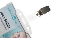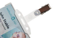 The Crocodile ID Card Clip is a cost-efficient solution to visually display ID cards and badges. It has a built-in durable nylon strap with a plastic popper that securely fastens the cards in place.