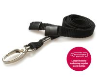 10mm Recycled Plain Black Lanyards with Metal Lobster Clip (Pack of 100) [L-B-BKL]