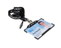 These 15mm Black Student Lanyards with Metal Lobster Clip are made of recycled PET material printed with “Student" text in white along the length of the lanyard. They come in a standard 90cm length (45cm adult drop length) with a safety breakaway feature and metal lobster clip attachment.
